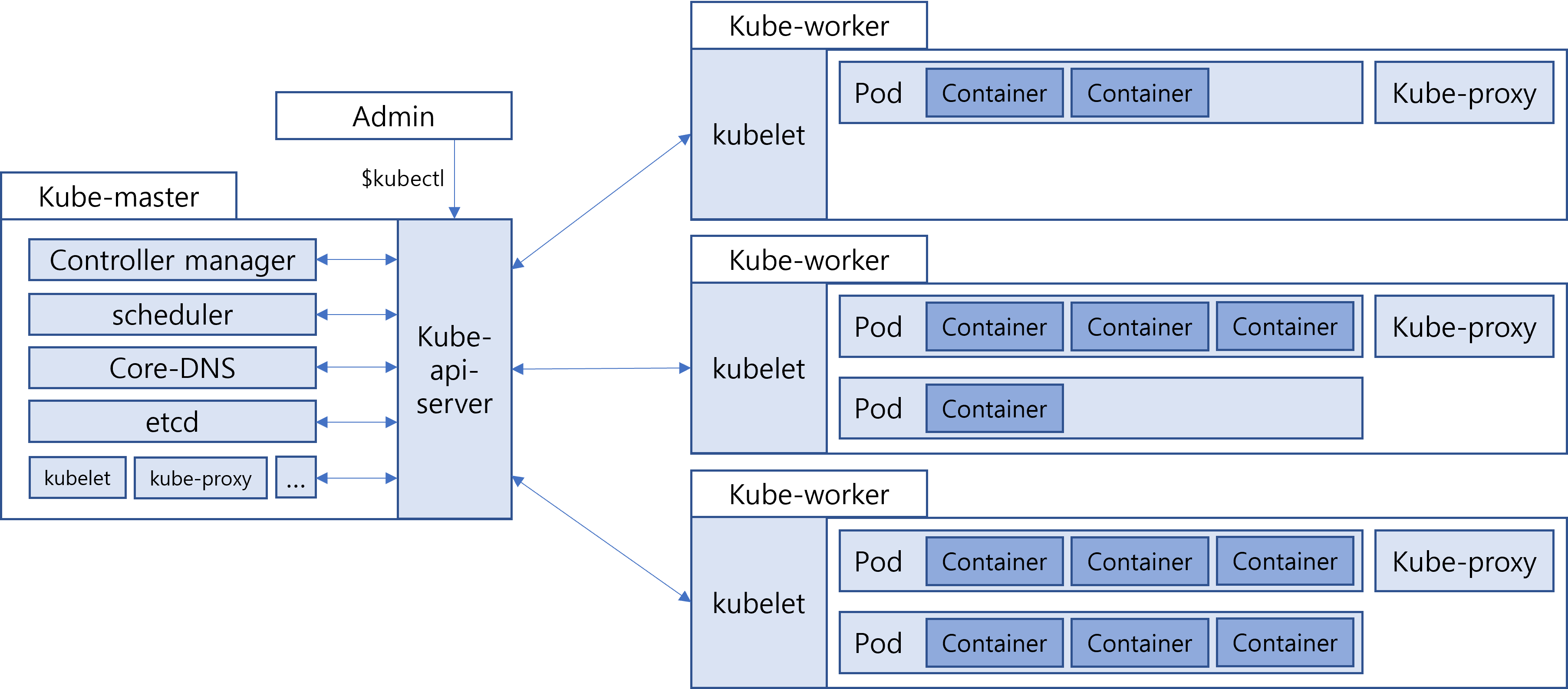 어드민은 kubectl 명령을 통해 master node에게 명령할 수 있다. -